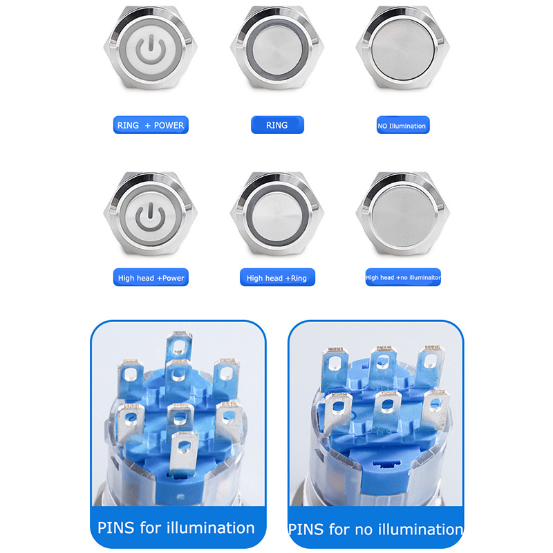 Made of brass nickel plated material, strong and durable. High-grade appearance and nice touch feeling. Adopt rubber ring and hexagonal nut fixed, anti dust and waterproof, which make it great for outdoors use. Copper plating silver terminals for good conductive properties. Momentary type, push it-on, release it-off. Metal button head durable for longstanding press.