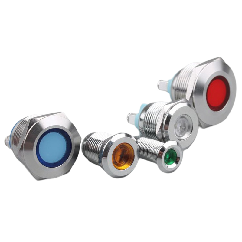 8mm Metal Signal Indicator Waterproof LED High Brightness Blue Green Red 6V/12V/24V/220V