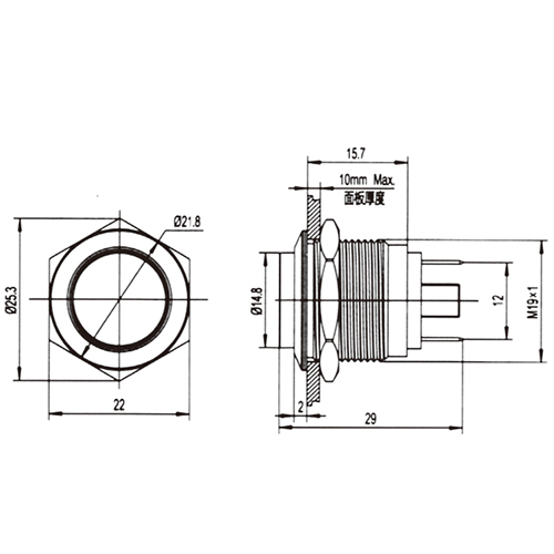 | Mounting Hole | 19mm |